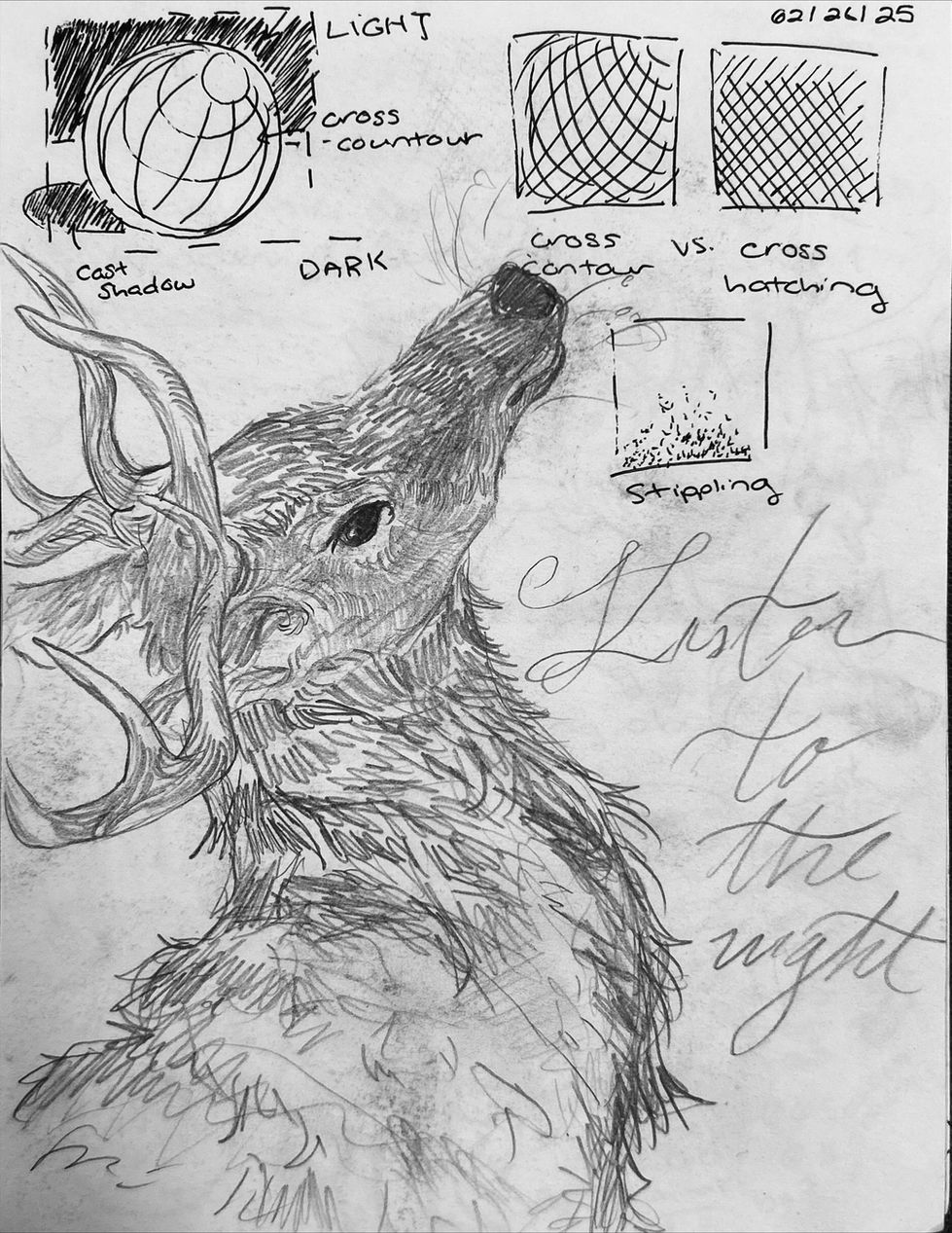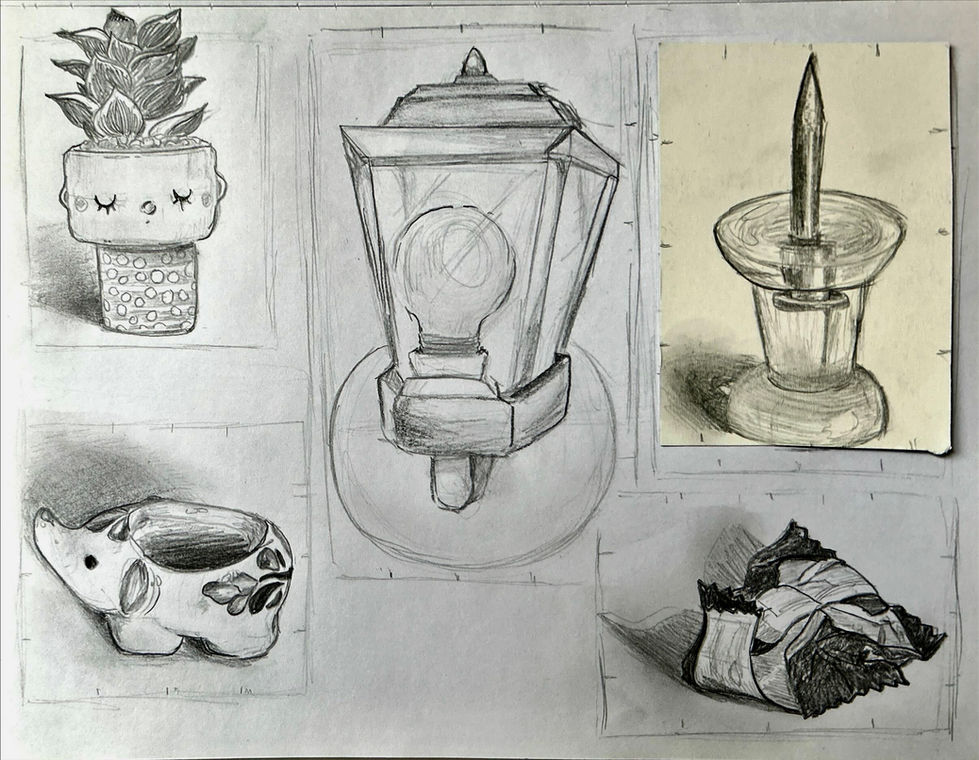 Sketches and practices created using a classic art medium, pencil.